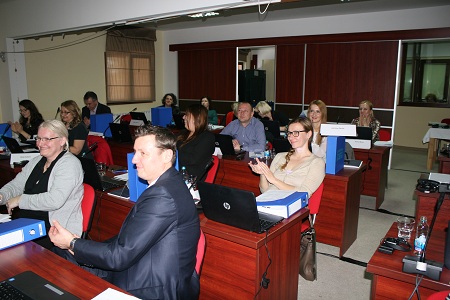 The training was intimately linked and supported by the contents of the Training Manual. The training included all the main aspects of higher education reform with a particular focus on the development and practical application of qualifications standards and occupational standards in BiH. In addition, it covered the: modernisation context in BiH; outcomes of the Yerevan EHEA Ministerial Conference; updated 2015 'Standards and Guidelines for Quality Assurance in the EHEA'; updated 2015 'ECTS Users' Guide'; curriculum development and learning outcomes. etc. A crucial aspect of the training was the provision to all those being trained of a hard copy compendium of eighteen key documents.