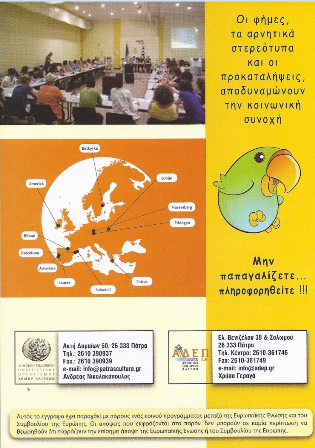 Patras is a harbor city inhabited by 200,000 people. About 22,000 migrants of different countries live in the city and its suburbs. It is inhabited by various types of population with different origins, languages, religions and cultures. Knowing all these groups of population is of vital importance for organizing a friendly living environment for all.